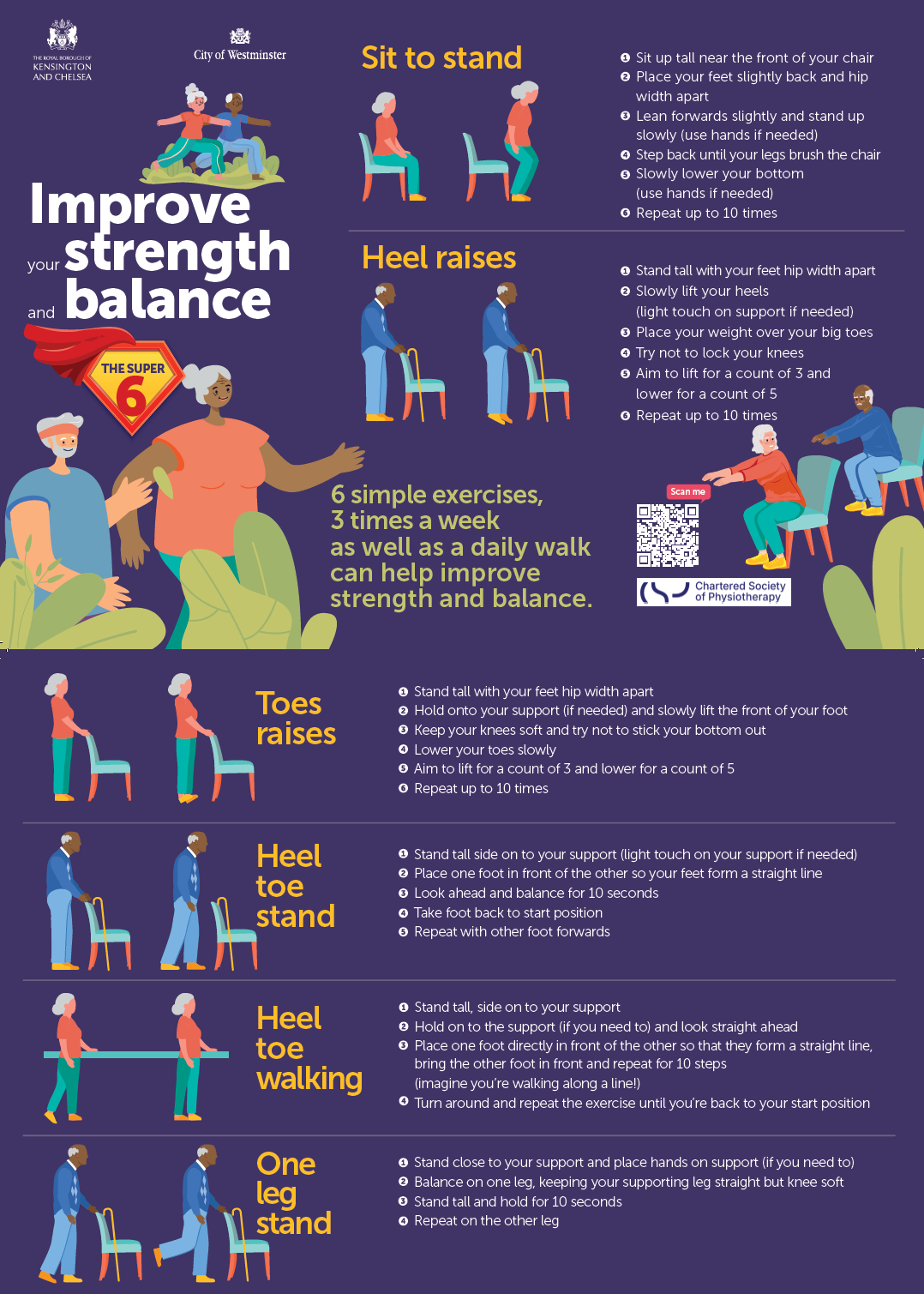 In addition, these simple Super Six exercises will help. These can be done from home by following the leaflet, or this Stay active at home, prevent falls video